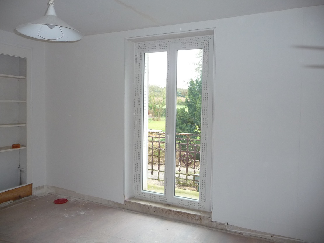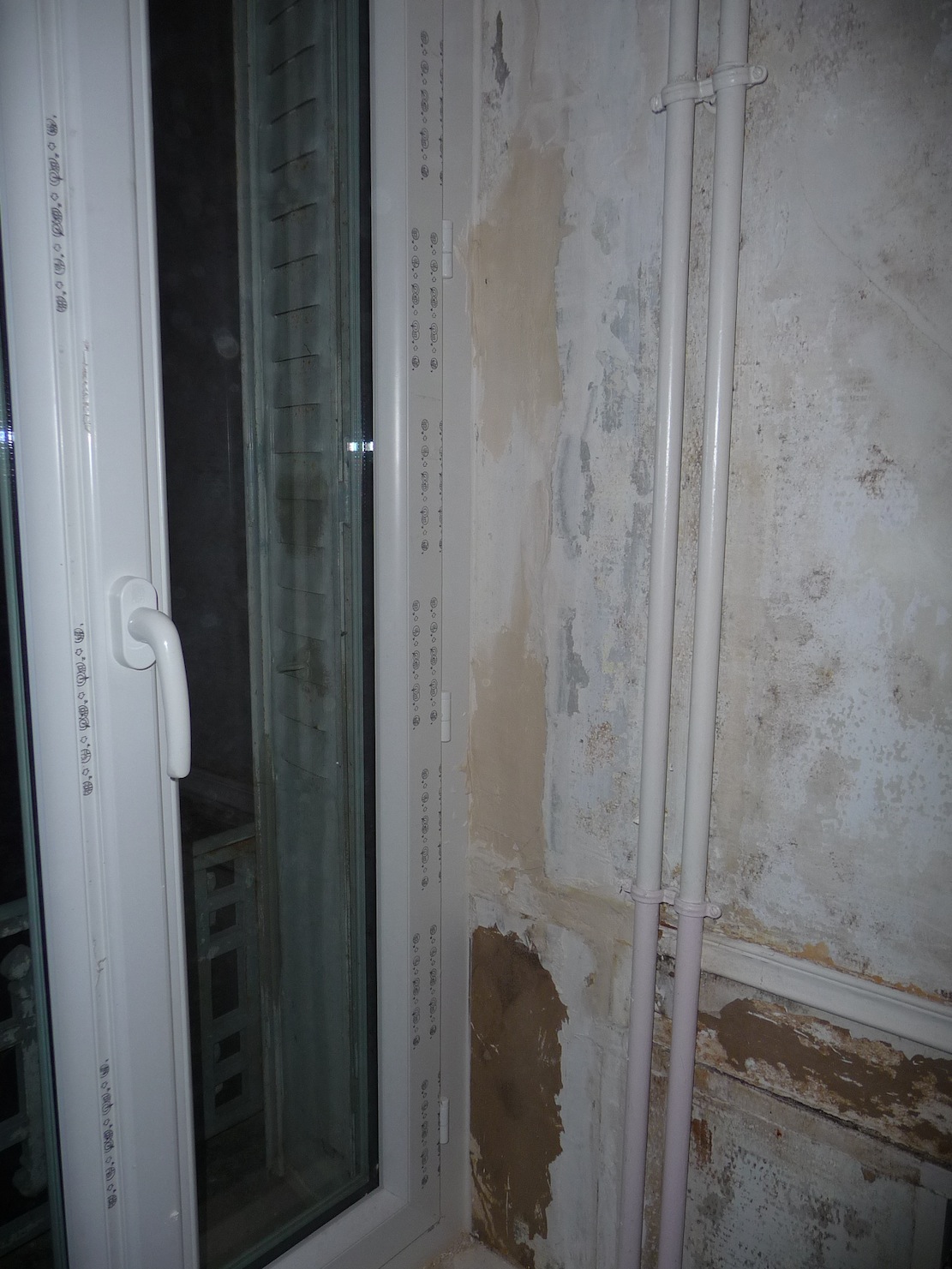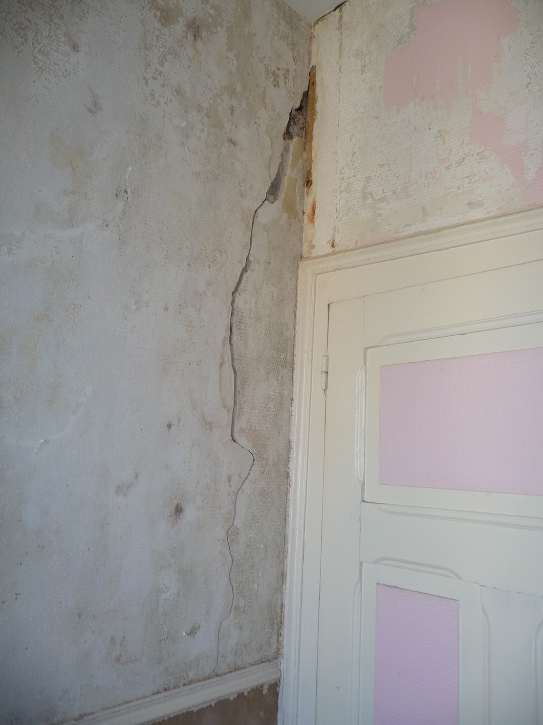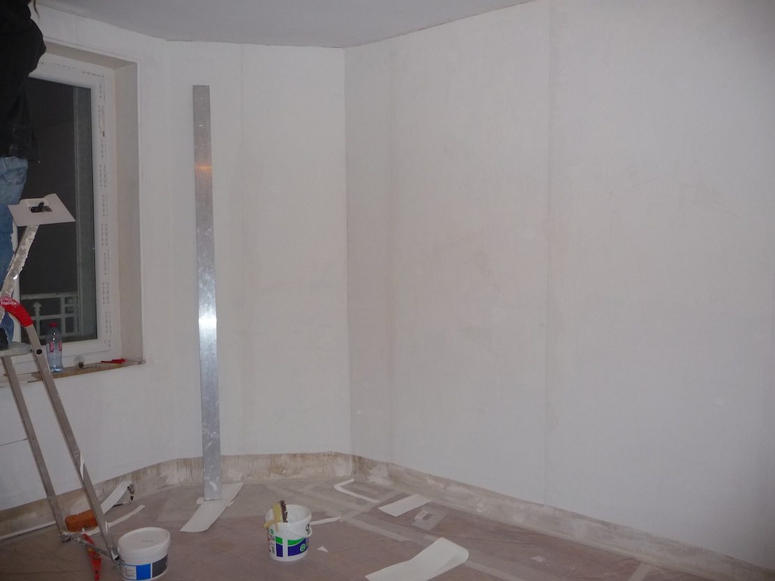 La chambre d'Iris est elle aussi bien avancée, voici l'état des murs avant le support à neuf (mais après décapage grossier et enduit de rebouchage):