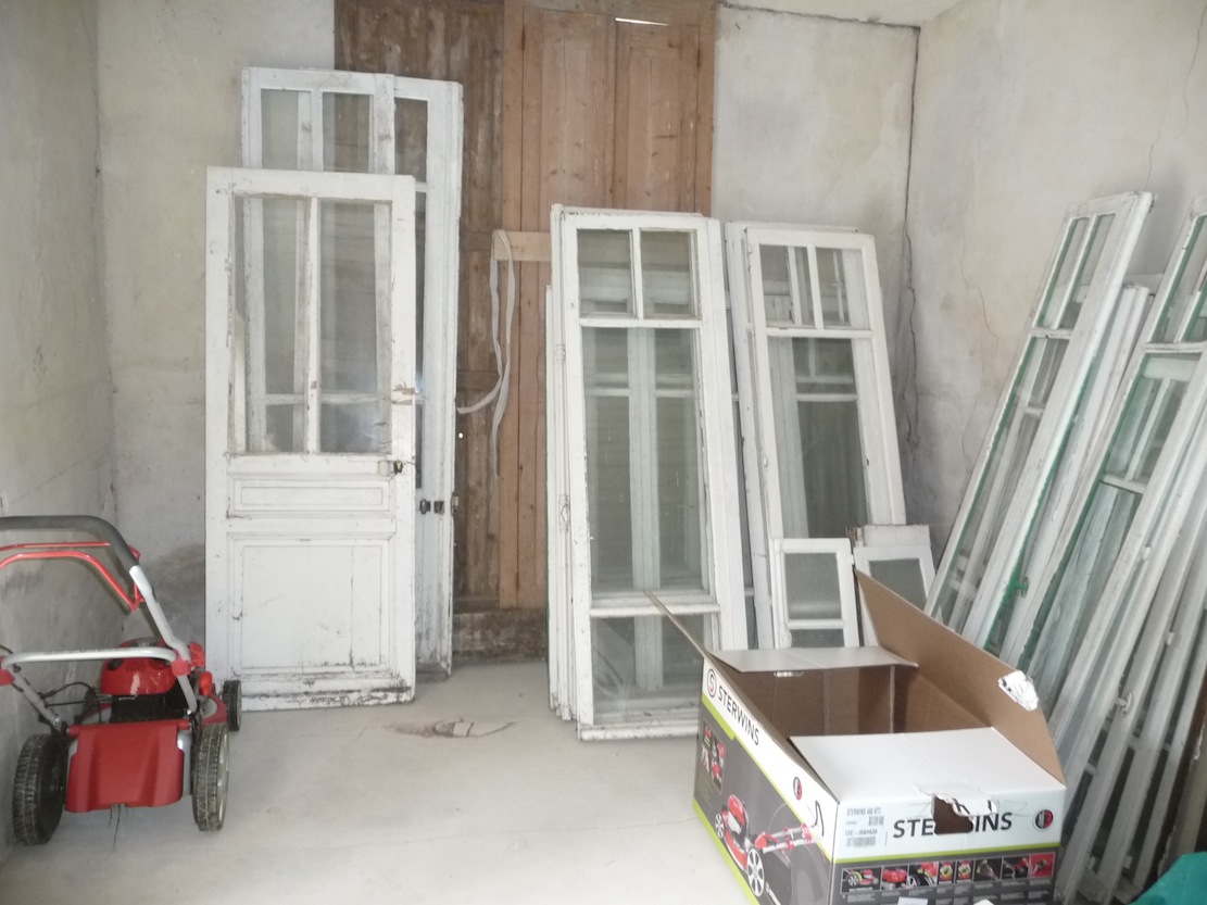 Pour l'instant il y a les anciennes fenetres et la tondeuse, mais c'est la première étape pour vider le salon qui est dans un état déprimant, dont je n'ose même pas mettre la photo.
