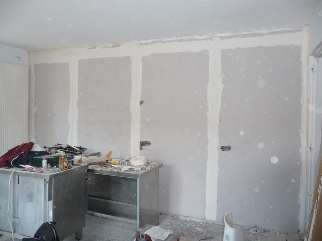 Les bandes, à l'exception de la jointure plafond sont posées: